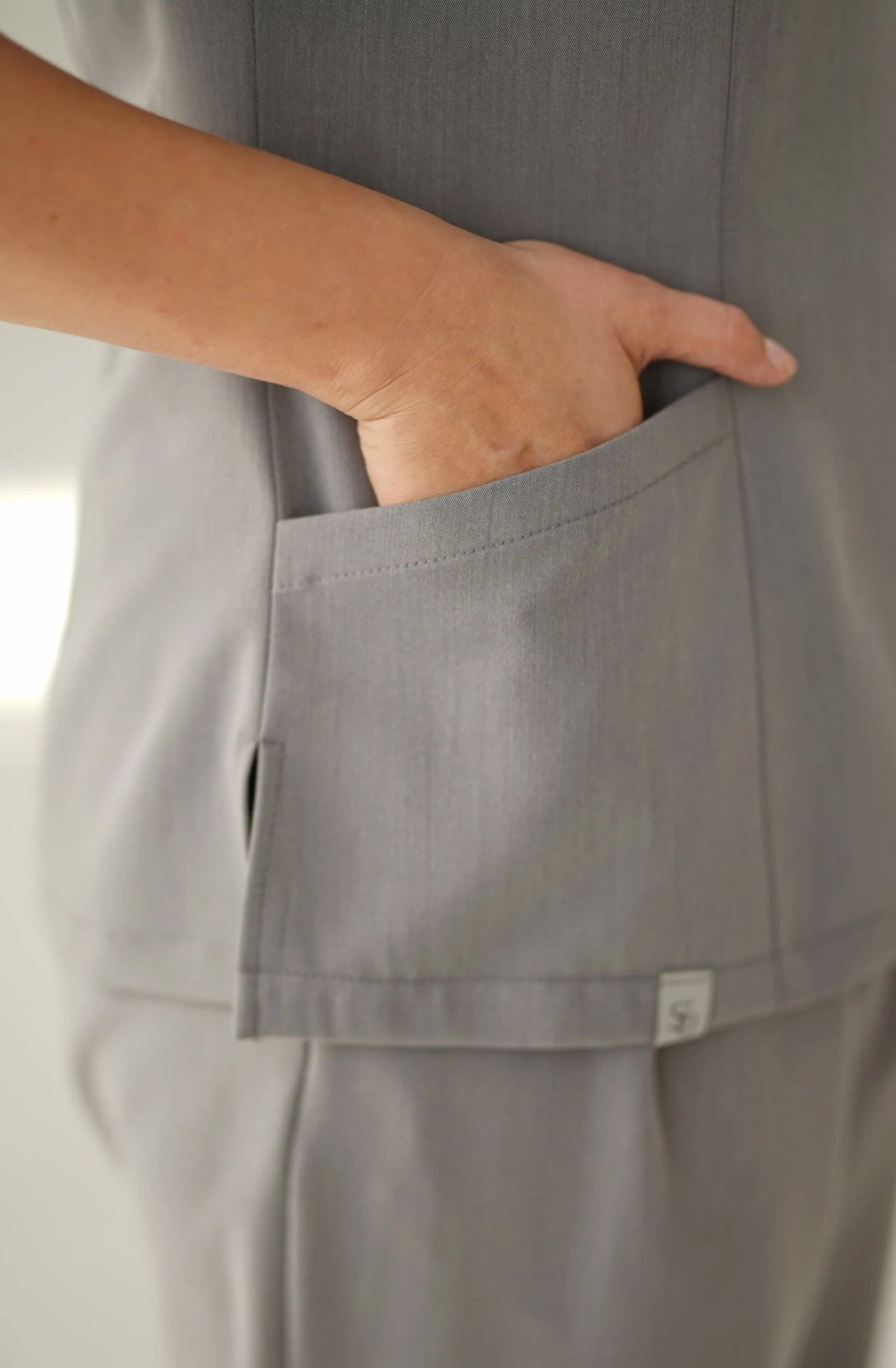 Bluzka CAPRI GREY to połączenie minimalistycznego designu i funkcjonalności, które definiują markę S’OVERALL. Stworzona dla kobiet w branży beauty, medycznej i wellness, które cenią profesjonalny wygląd, ale nie chcą rezygnować z wygody.