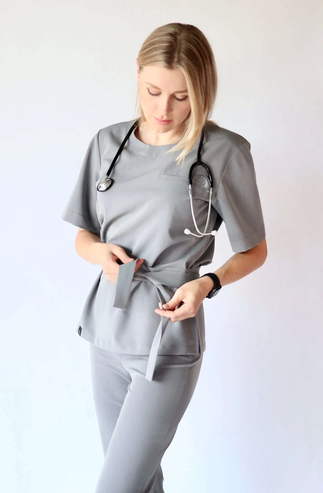 Bluzka MITI GREY to idealna opcja dla kobiet w branży medycznej i beauty.