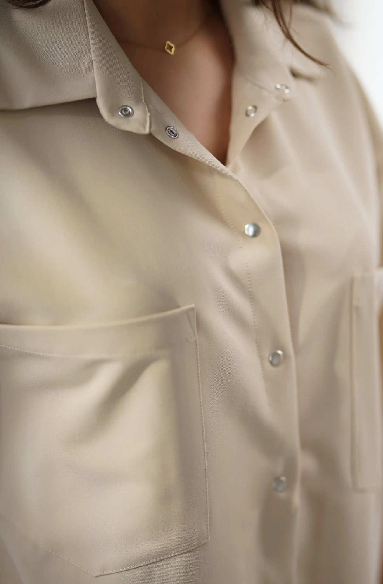 - Koszula oversize z wpuszczanymi kieszeniami i napami