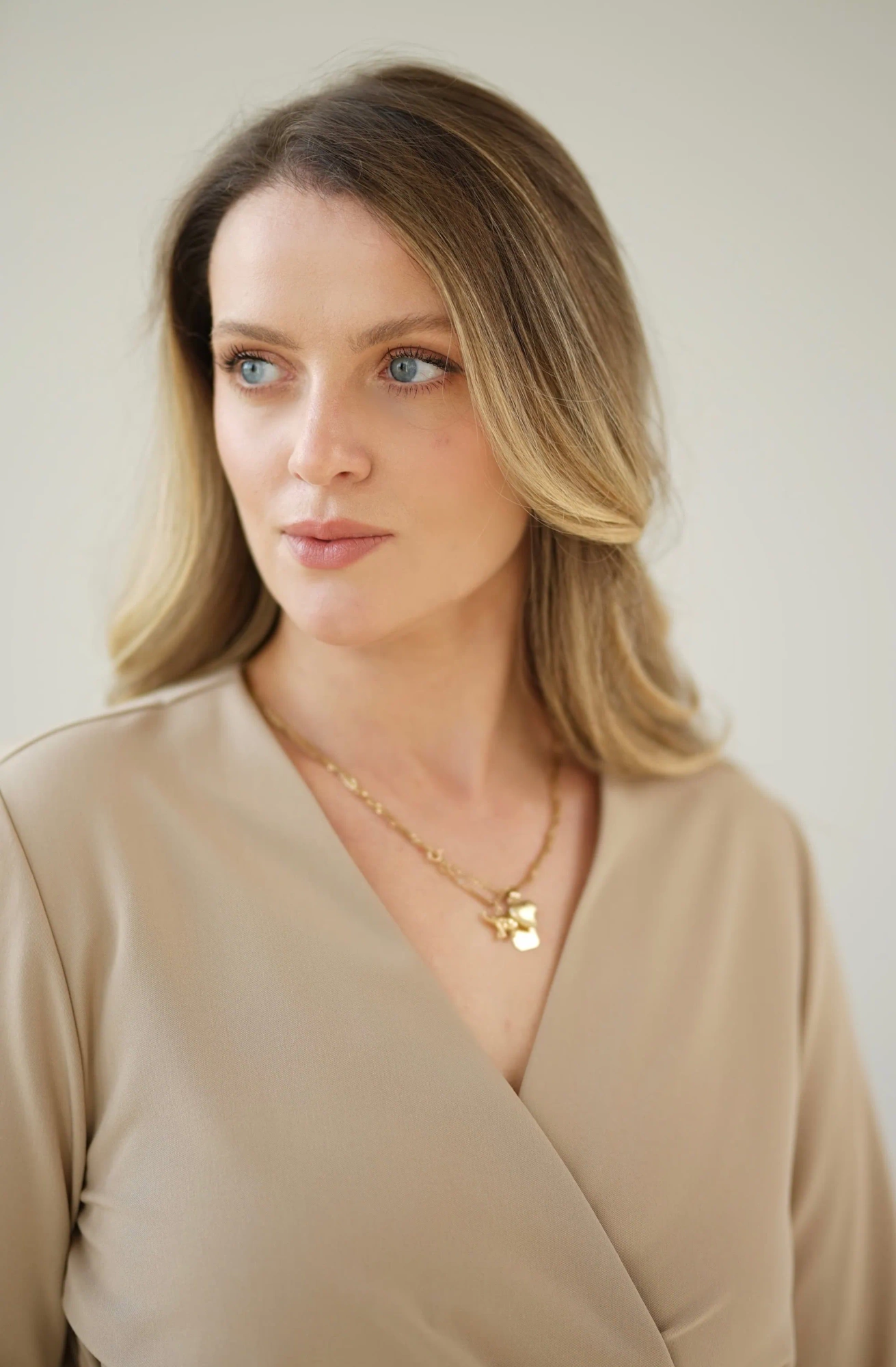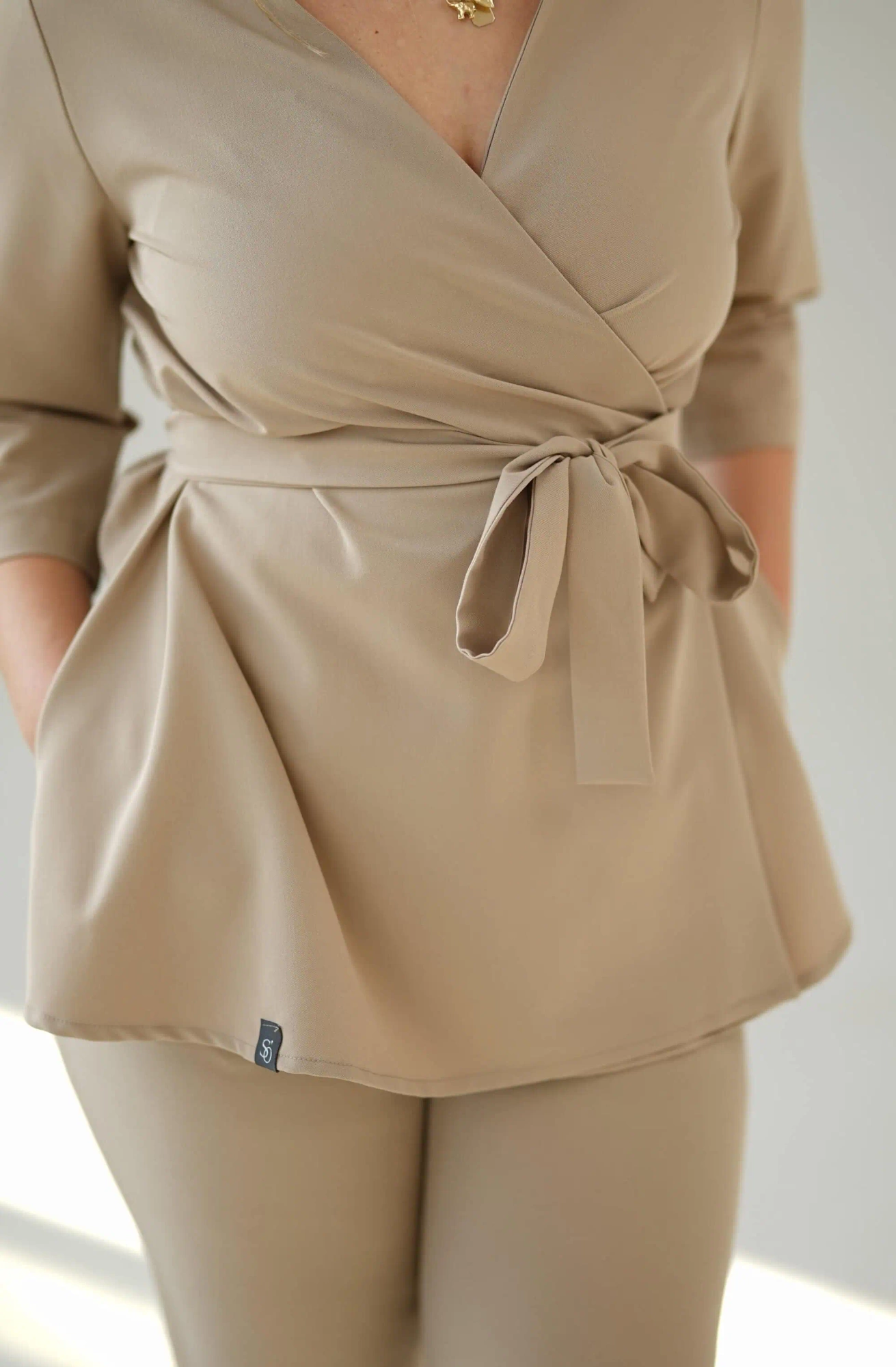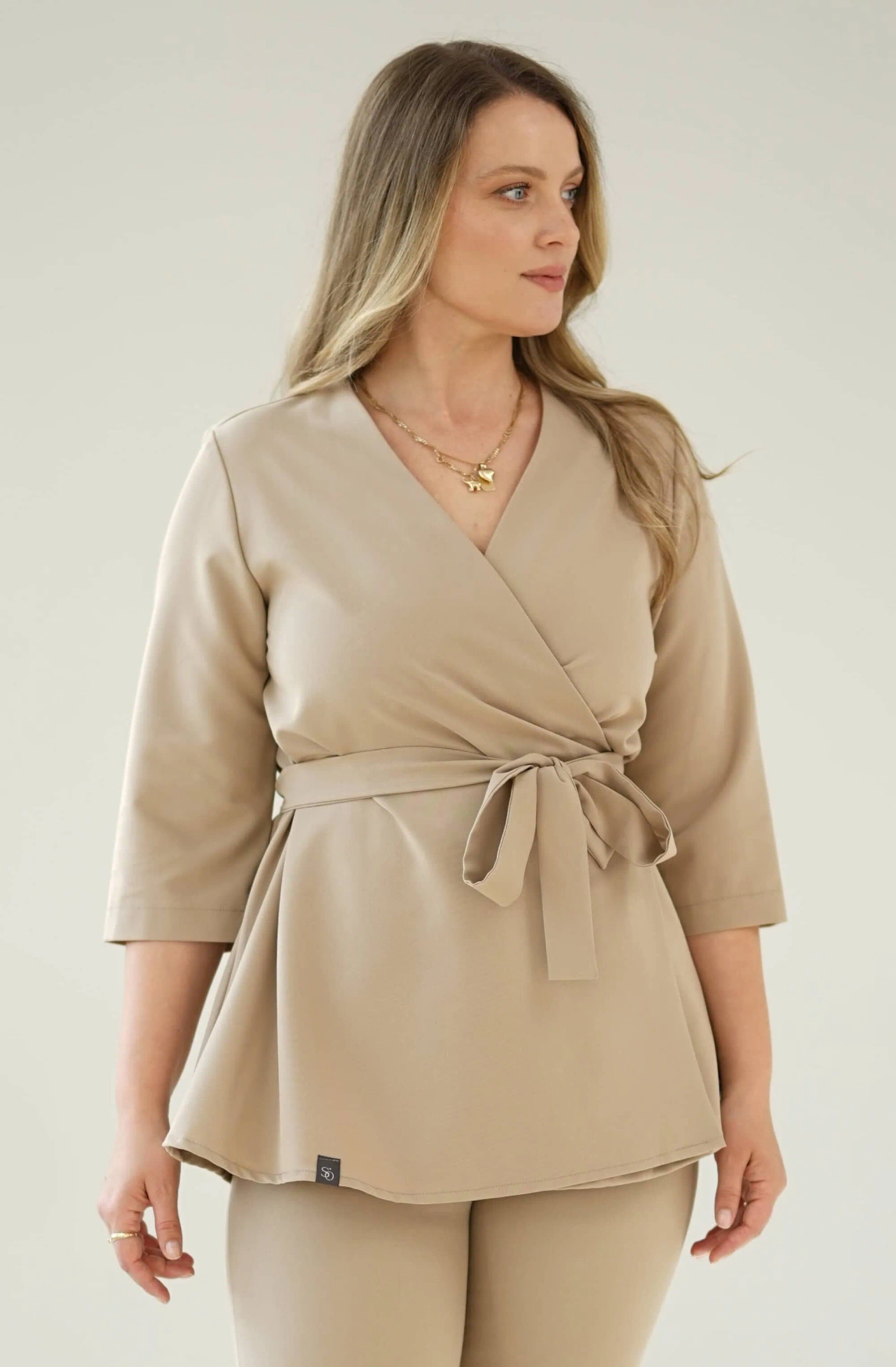 Tunika kopertowa ZAYA SAND to idealna opcja dla kobiet w branży beauty.